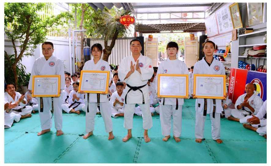 Nhân dịp này Hội đã trao chứng thư Huyền đai đệ Nhị đẳng, đệ Nhất đẳng cho hơn 50 môn sinh đạt kết quả qua kỳ thi năm 2025.