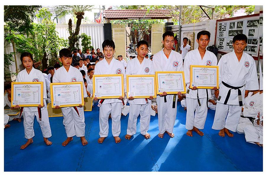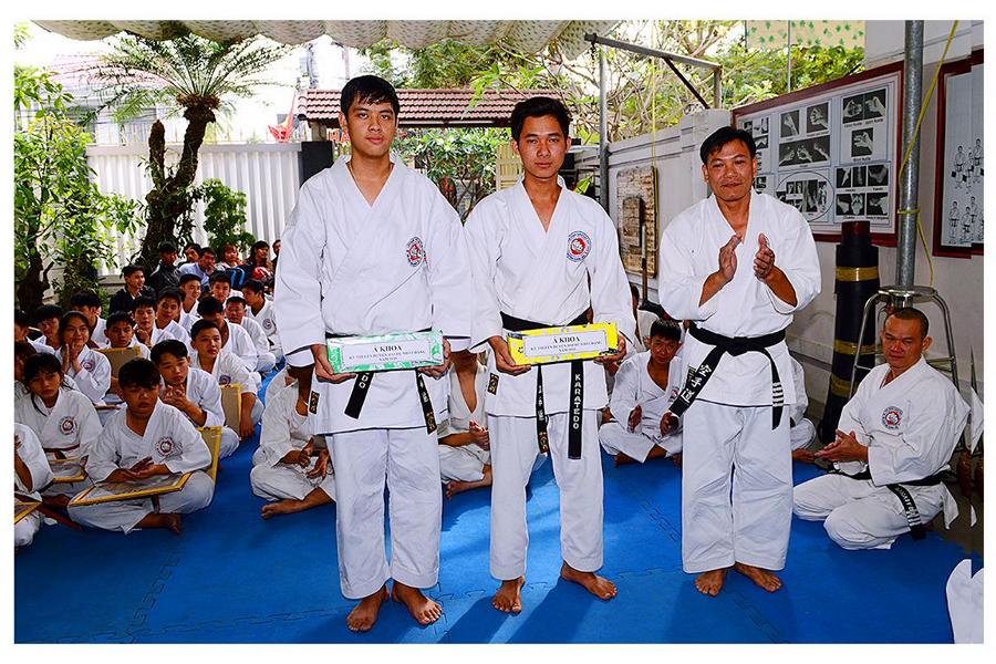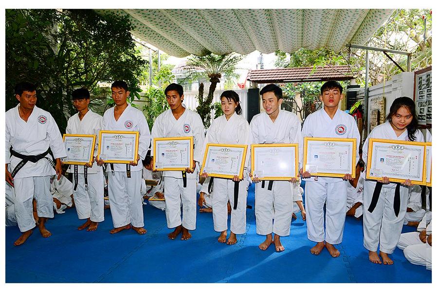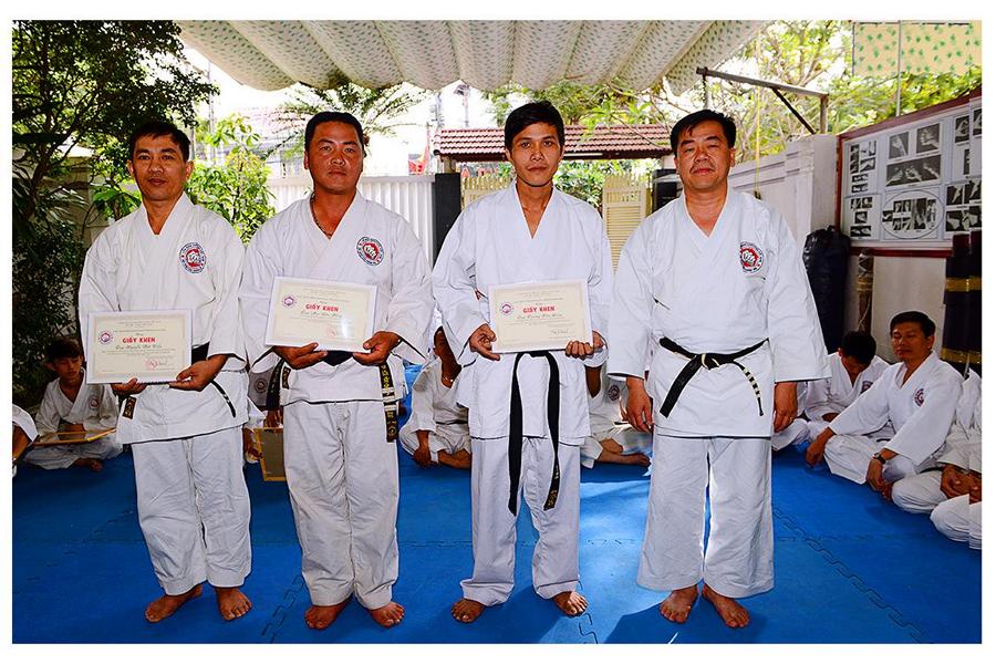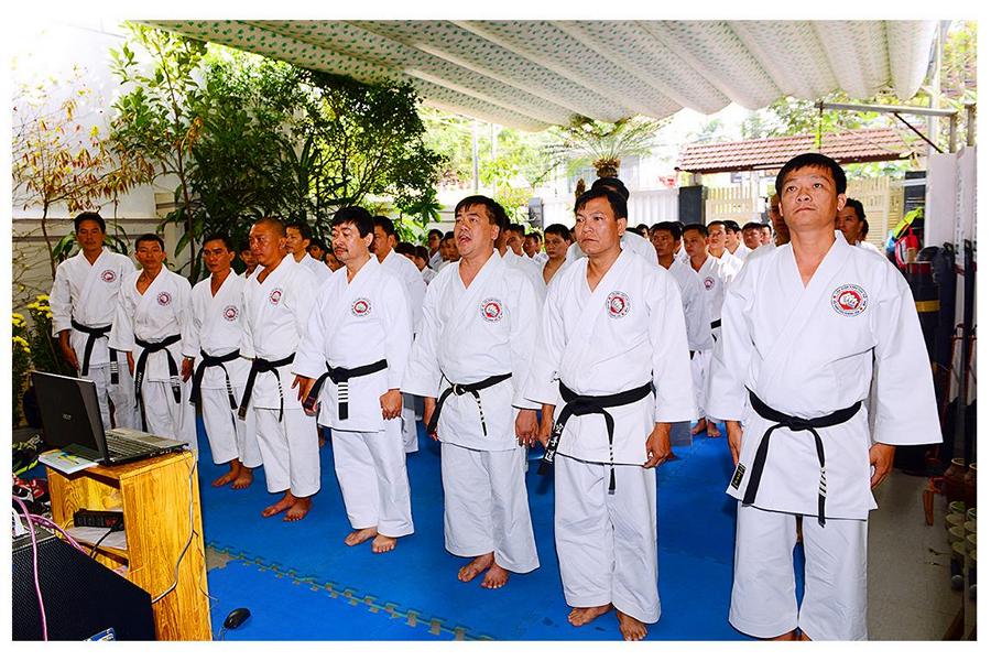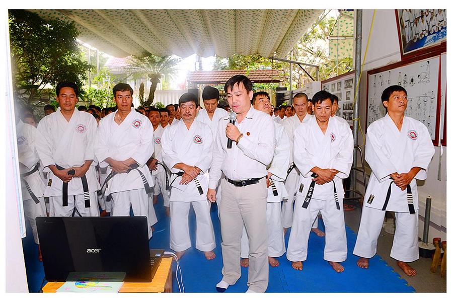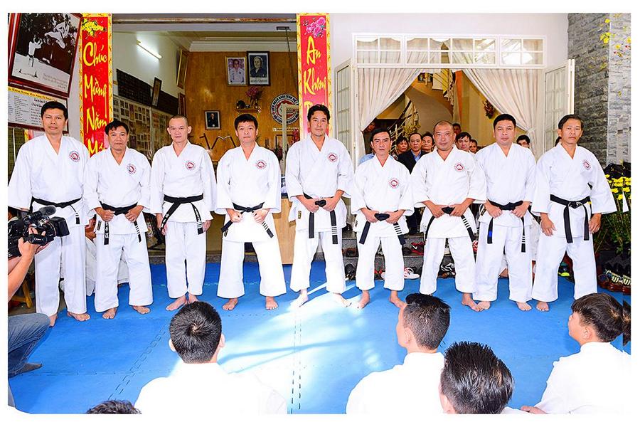 Võ sư Nguyễn Phúc Vinh – Phó Chủ tịch Hội, thay mặt Thầy giới thiệu đại diện các môn sinh các Khóa Karatedo tiêu biểu của Khánh Hòa từ Khóa 1 (năm 1984) đến Khóa 12 (năm 1994), giới thiệu các thành viên Ban Chấp Hành Hội, các Chi Hội và Bộ môn trực thuộc Hội Karatedo Khánh Hòa, đọc báo cáo kết quả hoạt động năm 2015, phương hướng năm 2016. Tiếp tục chương trình là đến phần phát Chứng thư huyền đai và thẻ đai đen cho 29 môn sinh vừa được chấm đậu trong kì thi lên Huyền đai đệ nhất đẳng năm 2015. Thủ khoa và 2 Á khoa cũng được nhận quà của Hội.