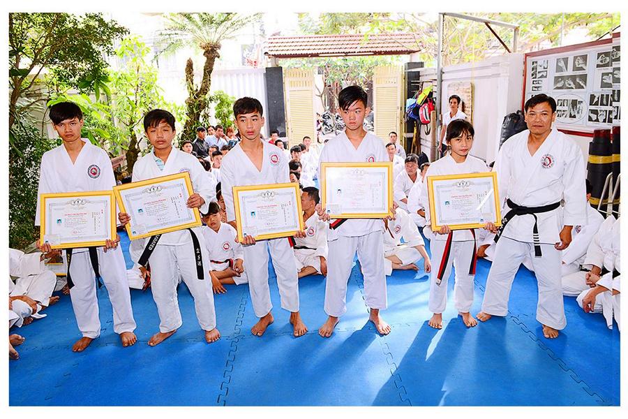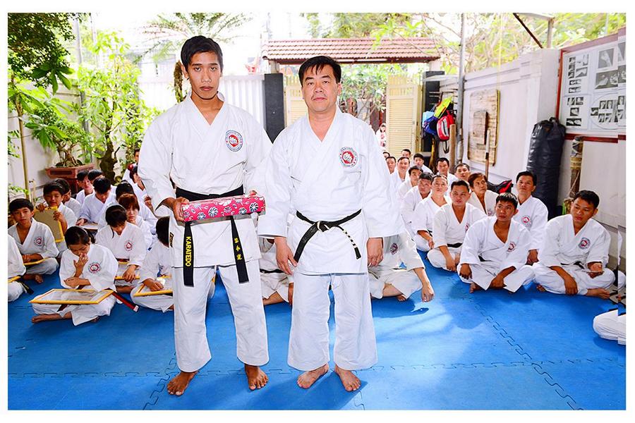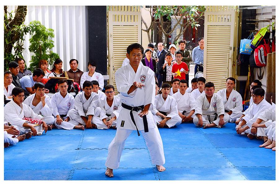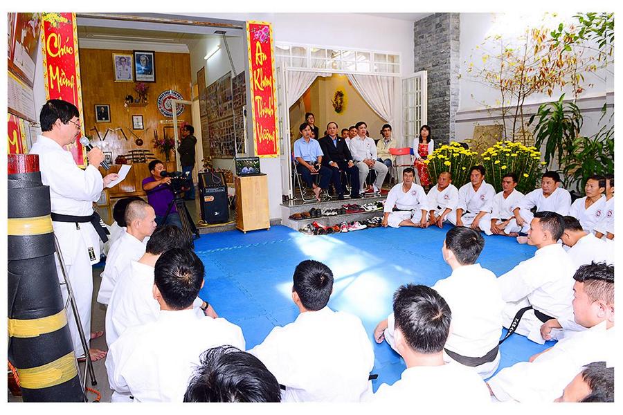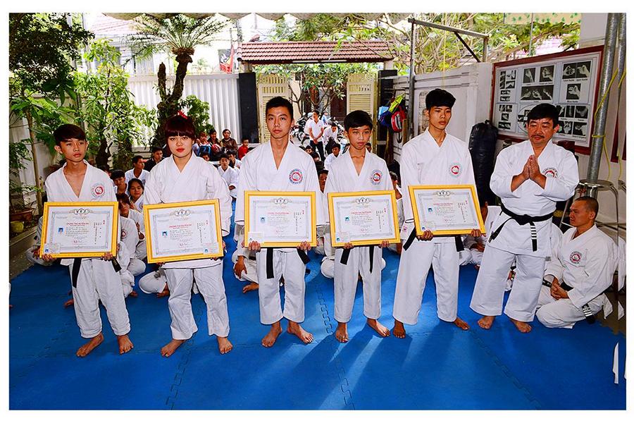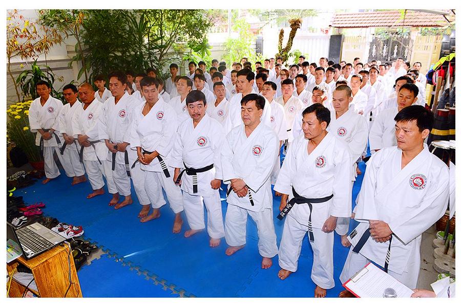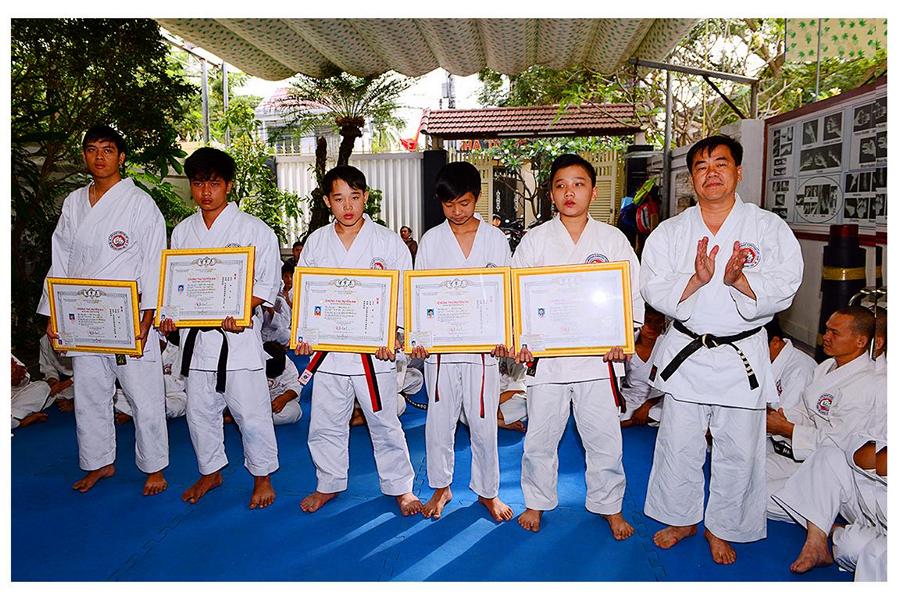 Võ sư Nguyễn Phúc Vinh – Phó Chủ tịch Hội, thay mặt Thầy giới thiệu đại diện các môn sinh các Khóa Karatedo tiêu biểu của Khánh Hòa từ Khóa 1 (năm 1984) đến Khóa 12 (năm 1994), giới thiệu các thành viên Ban Chấp Hành Hội, các Chi Hội và Bộ môn trực thuộc Hội Karatedo Khánh Hòa, đọc báo cáo kết quả hoạt động năm 2015, phương hướng năm 2016. Tiếp tục chương trình là đến phần phát Chứng thư huyền đai và thẻ đai đen cho 29 môn sinh vừa được chấm đậu trong kì thi lên Huyền đai đệ nhất đẳng năm 2015. Thủ khoa và 2 Á khoa cũng được nhận quà của Hội.