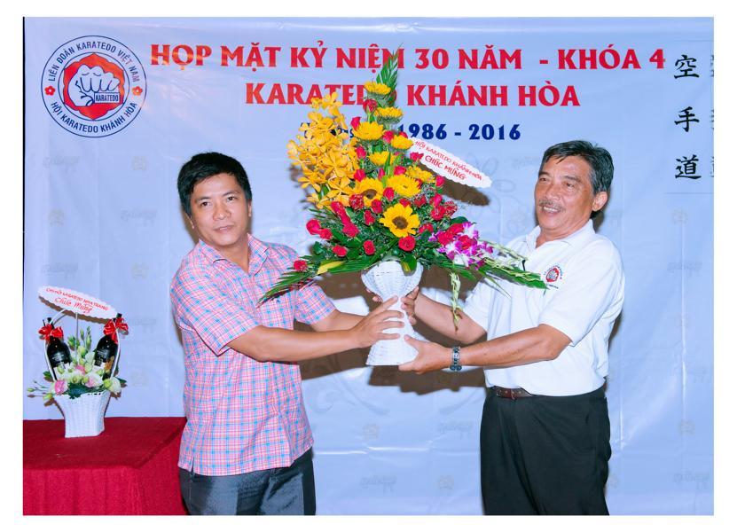 Thật là tự hào, hạnh phúc là cùng gặp nhau ở cuộc đời hữu hạn này, chúng ta hưởng duyên lành nên được học Karatedo, làm anh em với nhau và may mắn thay được làm học trò của Thầy. Thay mặt Ban Chấp Hành Hội Karatedo Khánh Hòa, Ban Chấp Hành Chi hội Karatedo Nha Trang, các Võ sư Văn Đình Thanh và Nguyễn Chí Thành đã tặng quà cho đại diện Khóa 4 – anh Trần Công An đáp từ tri ân đến sự quan tâm của Hội cũng như Chi hội Nha Trang.