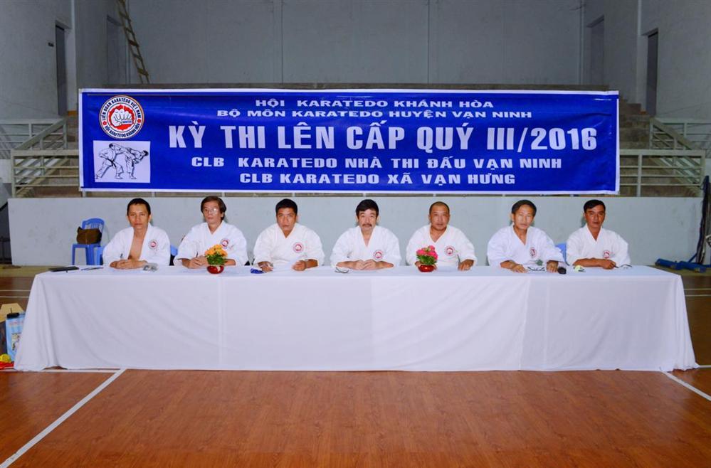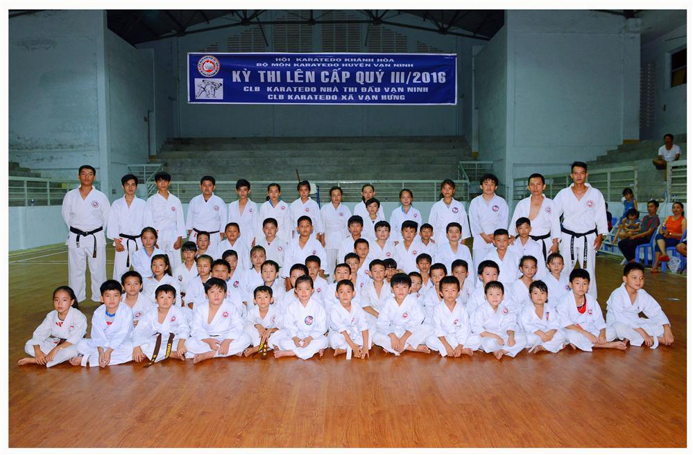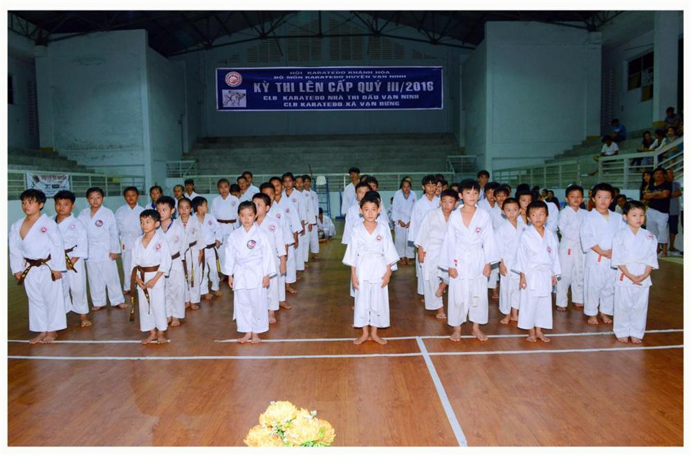 Thực hiện kế hoạch chuyên môn 6 tháng cuối năm, ngày 07 tháng 10 năm 2016 tại Nhà thi đấu Huyện Vạn Ninh, Bộ môn Karatedo Huyện Vạn Ninh tổ chức kỳ thi lên cấp Quý III năm 2016 cho 2 câu lạc bộ Karatedo huyện Vạn Ninh.