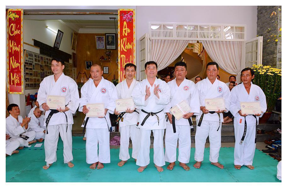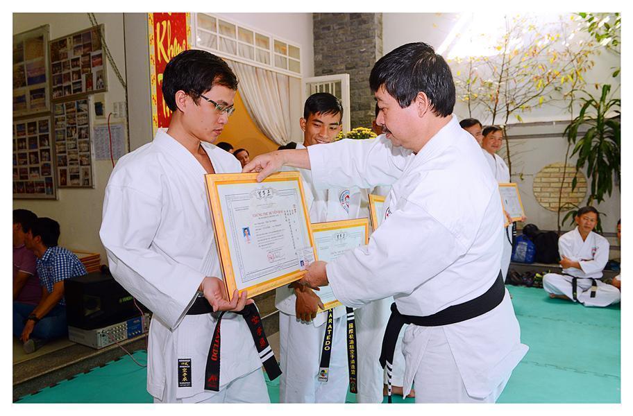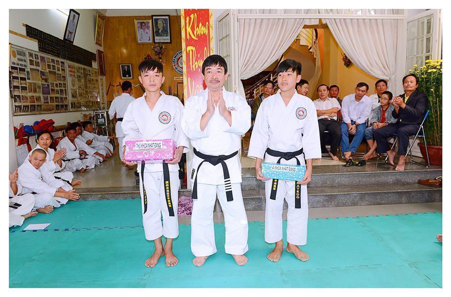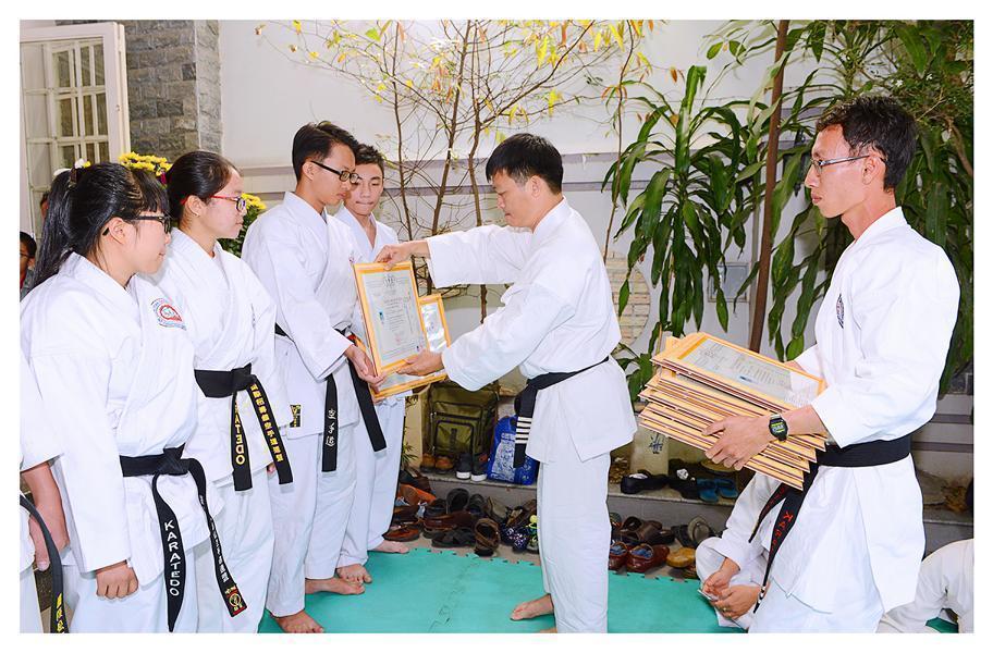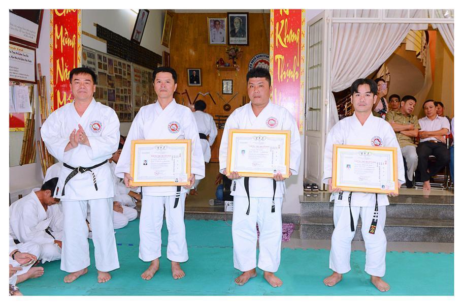 Hội tiếp tục tổ chức trao chứng thư Huyền đai, Thẻ Huấn luyện viên, Thẻ Đai đen cho các môn sinh được nhận đẳng trật mới, phát thưởng cho cá nhân, tập thể đã có thành tích xuất sắc trong phát triển phong trào Karatedo năm 2016. Một phần không thể thiếu trong các kỳ Bái Tổ hằng năm là tiết mục biểu diễn một vài kỹ thuật Karatedo, các bài Kata… khá đặc sắc là do có sự chuẩn bị chu đáo của người phụ trách: Võ sư Phạm Ngọc Thương cùng các HLV, môn sinh tham gia. Những đòn thế khởi động đầu năm đã đưa buổi lễ Bái Tổ năm nay trôi dần đến thời khắc kết thúc.