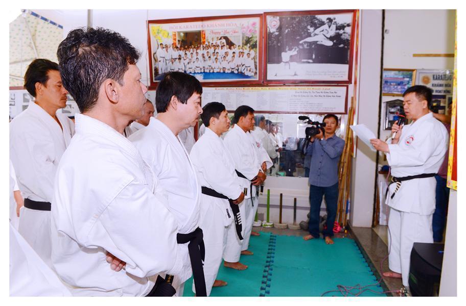 Sau đó, Võ sư Nguyễn Phúc Vinh thông qua kết quả hoạt động của Hội trong năm 2016, phương hướng năm 2017; giới thiệu các Ủy viên Ban chấp hành Hội, các Chi Hội và Bộ môn trực thuộc; giới thiệu những thành viên các Khóa Karatedo tiêu biểu của Khánh Hòa (từ Khóa 1 – học năm 1984 đến Khóa 12 học năm 1994).