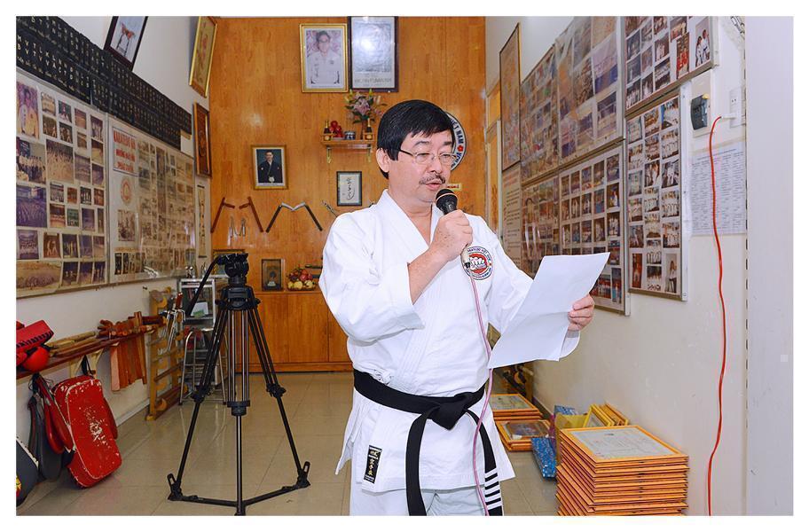 Võ sư Phạm Ngọc Thương đọc các Quyết định của Chủ tịch Hội