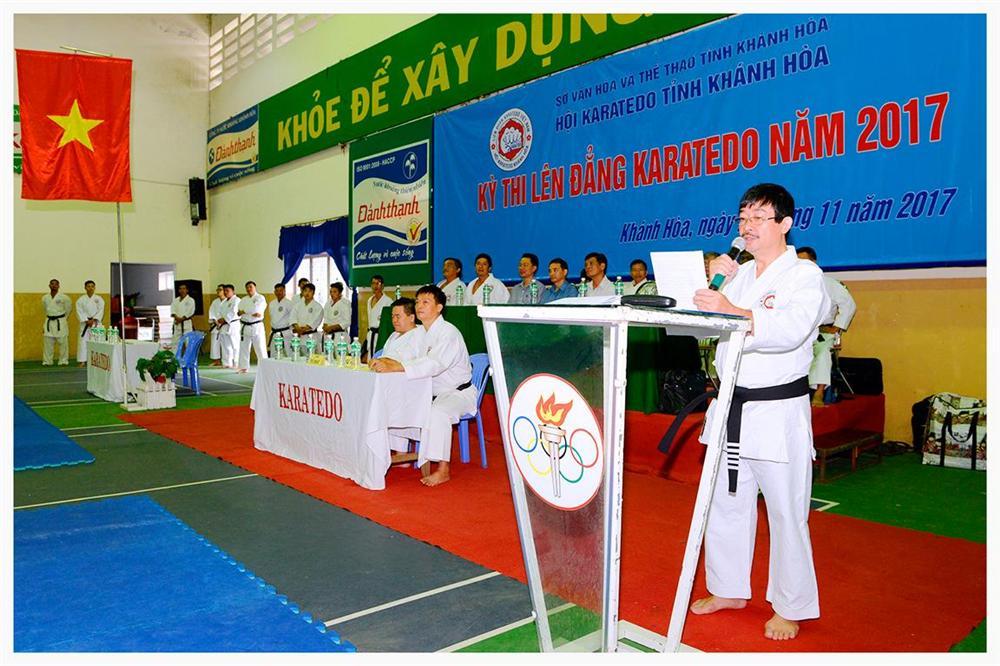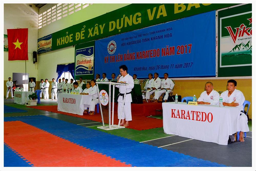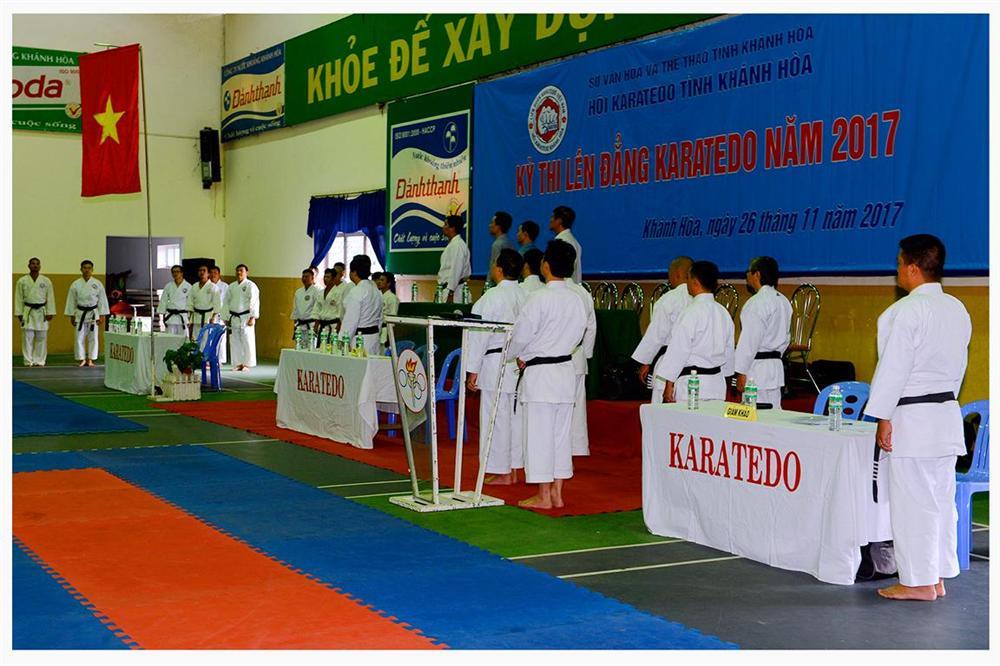 Sáng ngày 26-11-2017 tại Nhà thi đấu thể thao thuộc Trung tâm Tập luyện và thi đấu thể thao TP Nha Trang (12 Thi Sách, Nha Trang), Hội Karatedo tỉnh Khánh Hòa tổ chức kỳ thi lên đẳng năm 2017.
