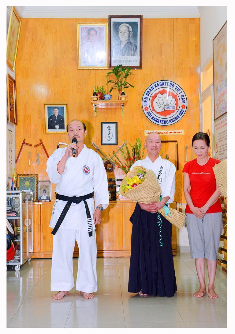 Tiếp đó Chưởng môn Tokuo Suzuki phát biểu chúc sức khỏe các môn đồ, môn sinh cùng gia quyến, nhắn nhủ học trò Khánh Hòa thường xuyên tu tập, rèn luyện Karatedo thật tinh thông để góp phần phát triển Hệ phái.