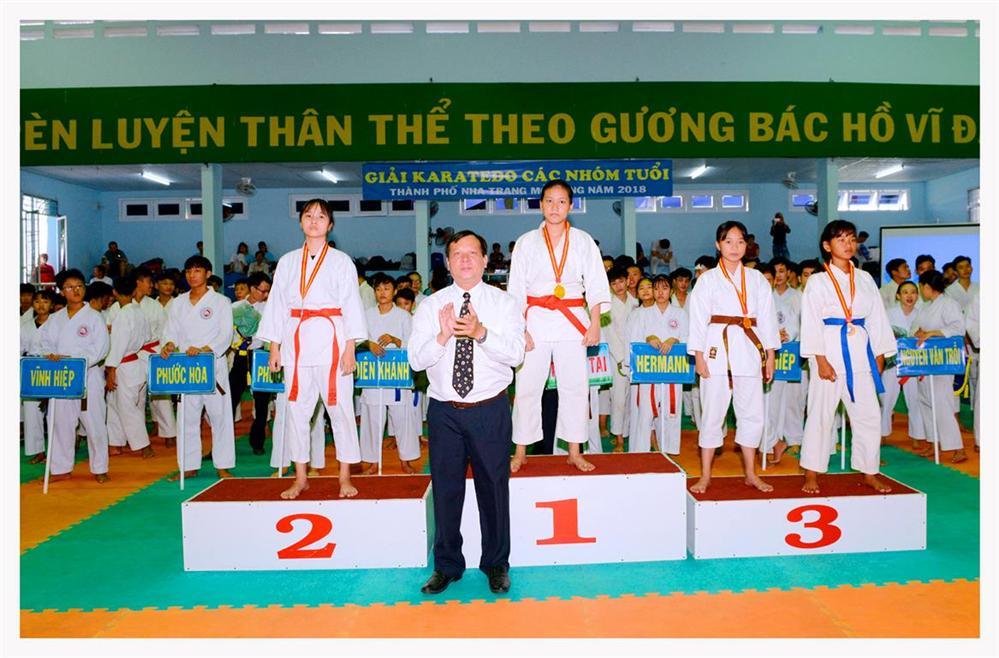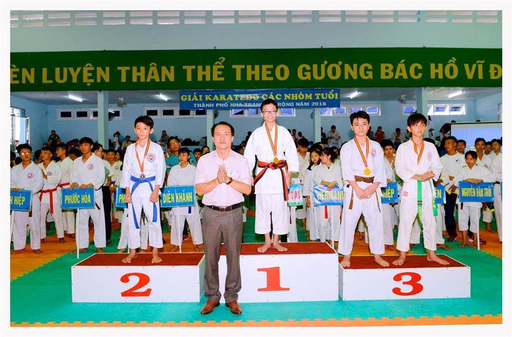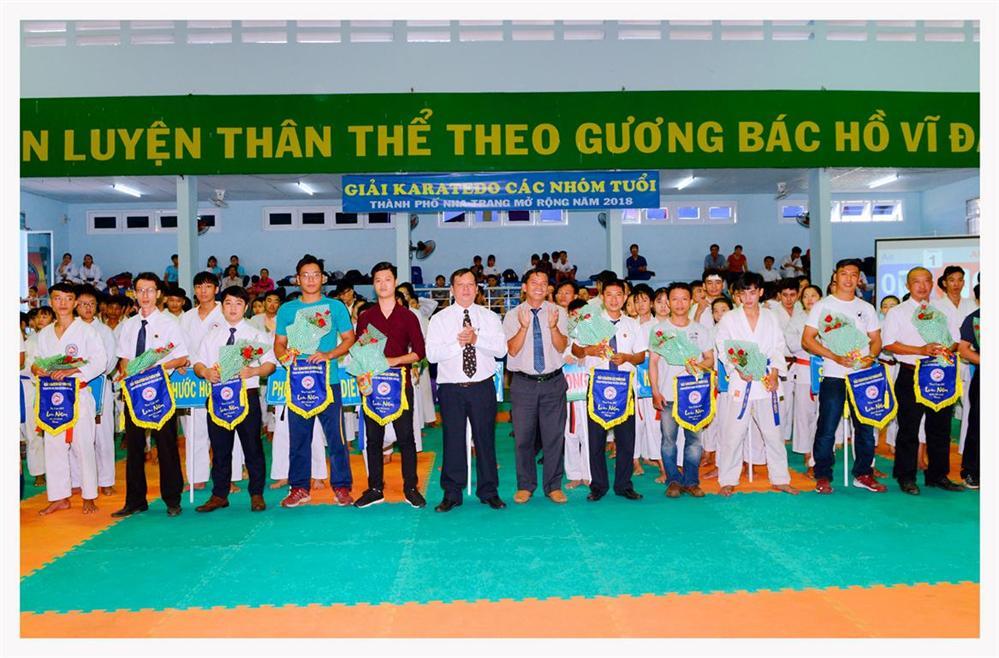 Ông Nguyễn Văn Minh- Chi hội trưởng Chi Hội Karatedo TP Nha trang trao huy chương và phần thưởng