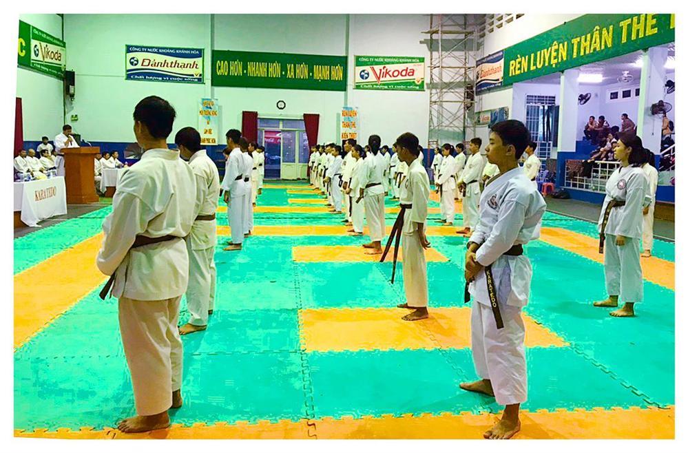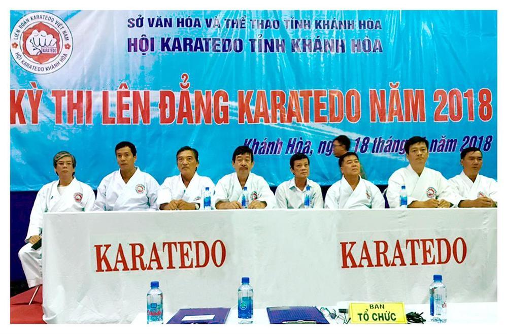 Vào lúc 7g30, ngày 18/11/2018 tại Nhà thi đấu thể thao thuộc Trung tâm tập luyện và thi đấu thể thao TP Nha Trang (12 Thi Sách – Nha Trang). Hội Karatedo tỉnh Khánh Hòa tổ chức Kỳ thi lên đẳng cho 43 nam, nữ võ sinh, môn sinh (trong đó có 41 thí sinh thi lên Huyền đai đệ nhất đẳng, 1 thí sinh thi lên Huyền đai đệ nhị đẳng, 1 thí sinh thi lên Huyền đai đệ tam đẳng).