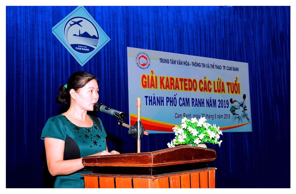Bà Phạm thị Thu Trinh - Giám đốc Trung tâm Văn hoá,Thông tin và Thể thao TP Cam Ranh đọc lời khai mạc Giải