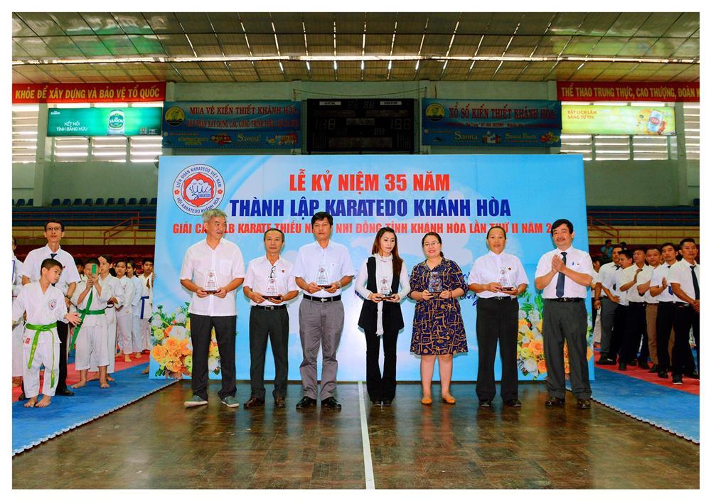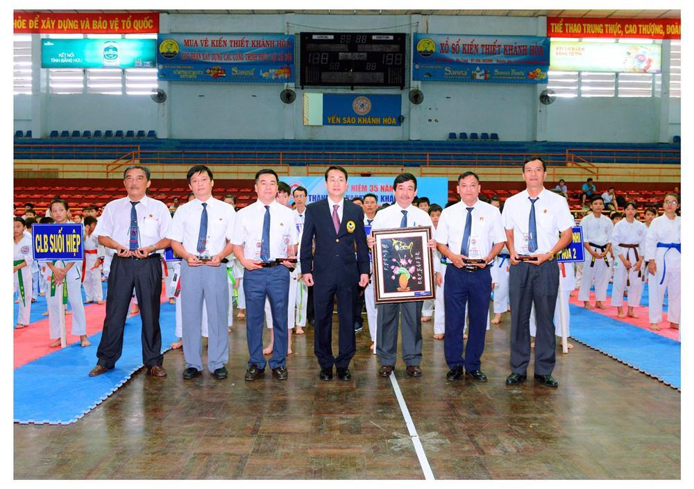 Sau nghi thức khai mạc; Ông Nguyễn Phúc Vinh – Phó Chủ tịch Hội thay mặt BCH đọc báo cáo 35 năm hoạt động của Karatedo Khánh Hòa, điểm lại lịch sử Karatedo Khánh Hòa, báo cáo nhấn mạnh từ một điểm tập đầu tiên tại trường Phổ thông cấp III Nguyễn Văn Trỗi – Nha Trang, đến nay phong trào Karatedo đã có mặt hầu hết các địa phương trong tỉnh Khánh Hòa với 36 câu lạc bộ, hơn 1.000 võ sinh, 148 Huấn luyện viên và phụ tá HLV từ Huyền đai đệ nhị đẳng đến đệ tứ đẳng; 15 Võ sư từ Huyền đai đệ ngũ đẳng đến đệ bát đẳng. Về cơ cấu tổ chức, Hội Karatedo Khánh Hòa có 615 Hội viên; 10 Chi Hội, Bộ môn, Võ đường trực thuộc; hơn nữa Karatedo Khánh Hòa còn có 1 Ban Chấp hành đủ mạnh – đứng đầu là Võ sư Chủ tịch Hội, điều hành mọi hoạt động với kế sách linh hoạt phù hợp với từng thời kỳ phát triển, có 1 chương trình giáo khoa hoàn chỉnh cho việc tập luyện và thi cử, từ thấp đến cao bao gồm cả Võ thuật – Võ đạo, hài hòa cổ truyền và hiện đại; Ngoài ra Karatedo Khánh Hòa còn có 1 đội ngũ Võ sư, HLV vững mạnh, gương mẫu đoàn kết hết lòng đào tạo các môn sinh, võ sinh, vận động viên đồng đều cả 2 mục tiêu của mình là phong trào và đỉnh cao. Báo cáo đã khẳng định về công lao to lớn của Võ sư Nguyễn Tấn Kiệt, người Thầy của nhiều thế hệ học trò Karatedo, người đã đặt nền móng cho sự hình thành và phát triển vững mạnh, mang bản sắc đặc biệt của Karatedo Khánh Hòa, lời tri ân đối với Hệ phái Suzucho Karatedo, các cơ quan đoàn thể hữu quan trong và ngoài tỉnh, các bậc mạnh thường quân, các vị thân hữu… đã luôn đồng hành trong suốt chặng đường đáng nhớ vừa qua, mong muốn nhận được sự ủng hộ tiếp tục vì mục đích tốt đẹp của Hội Karatedo Khánh Hòa trong tương lai, đã khép lại bản báo cáo.