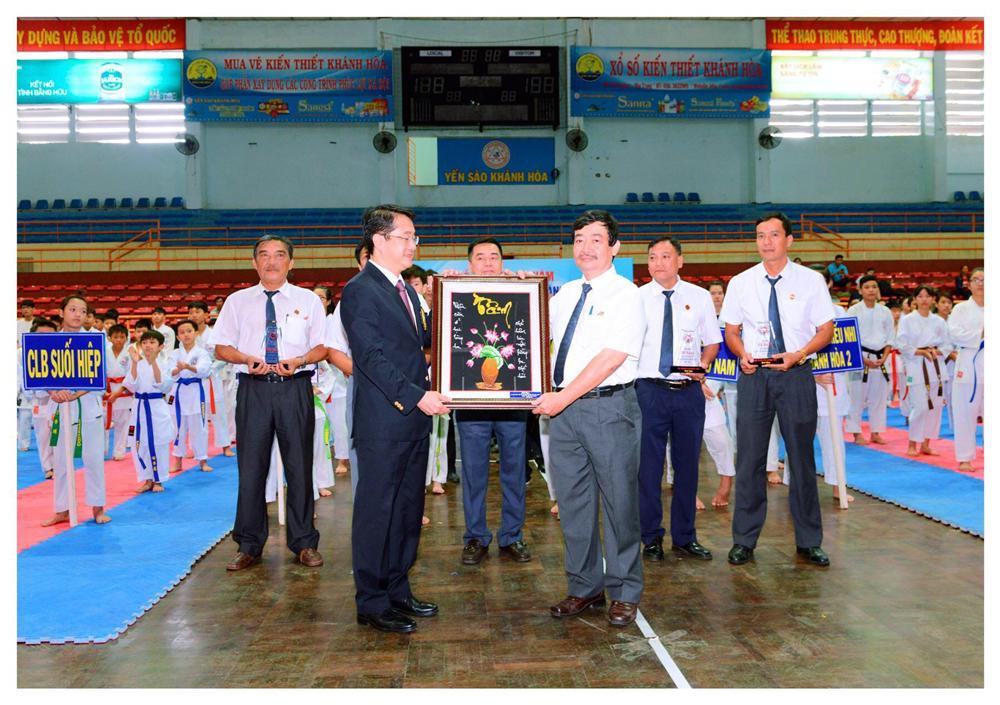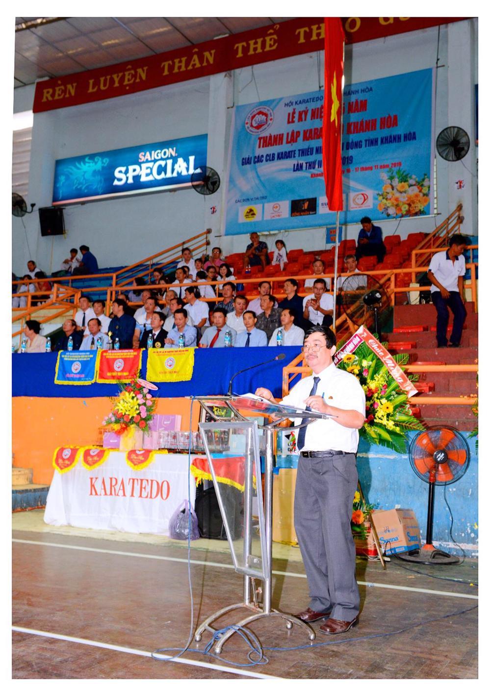 Chương trình buổi lễ tiếp tục bằng các bài phát biểu của Bà Nguyễn Thị Thu Thanh, Nguyên Giám đốc Trung tâm TDTT Nha Trang, Nguyên Chủ tịch Liên Đoàn Võ thuật Khánh Hòa và Ông Vũ Sơn Hà đều ghi nhận sự phát triển lớn mạnh cũng như tình cảm đối với Karatedo Khánh Hòa. Trong dịp này Ông Vũ Sơn Hà tặng bức tranh cho Hội Karatedo Khánh Hòa lưu niệm.
