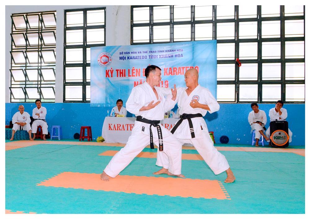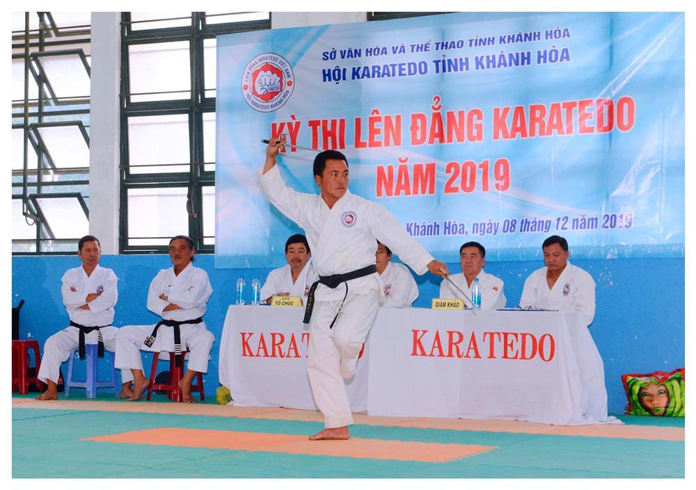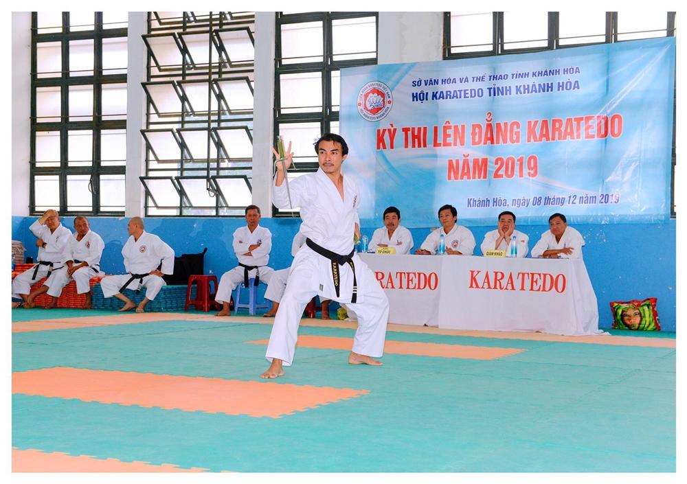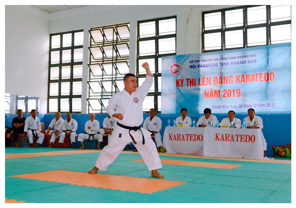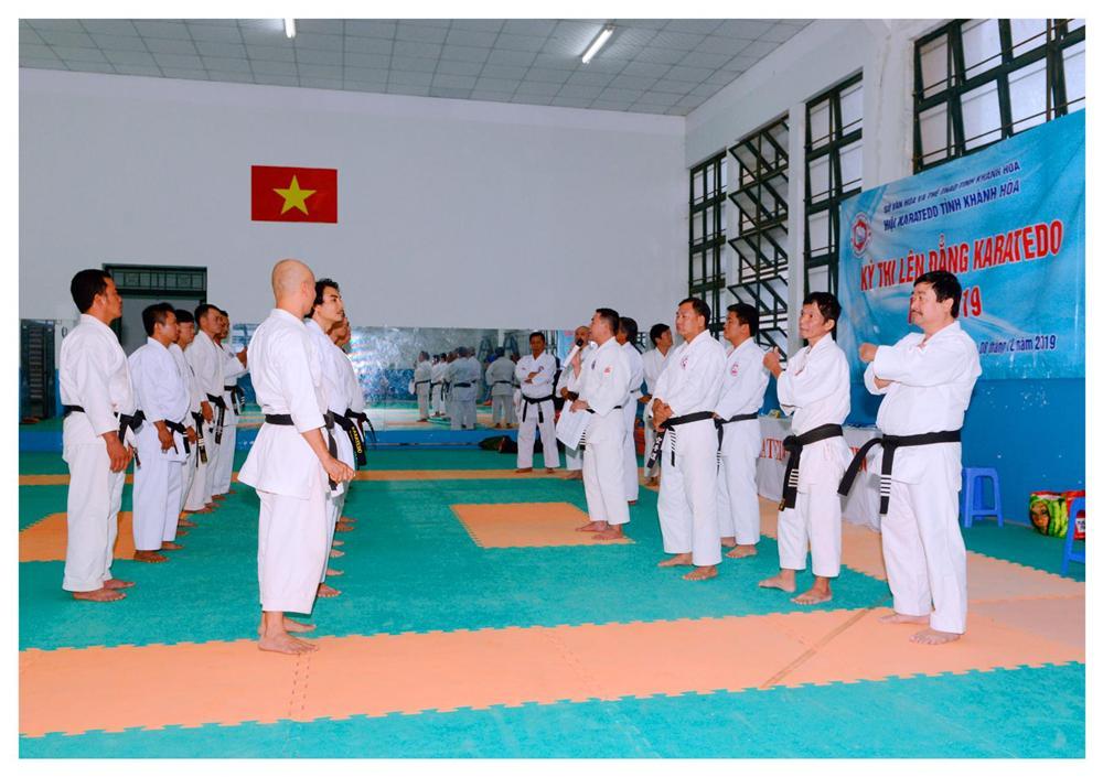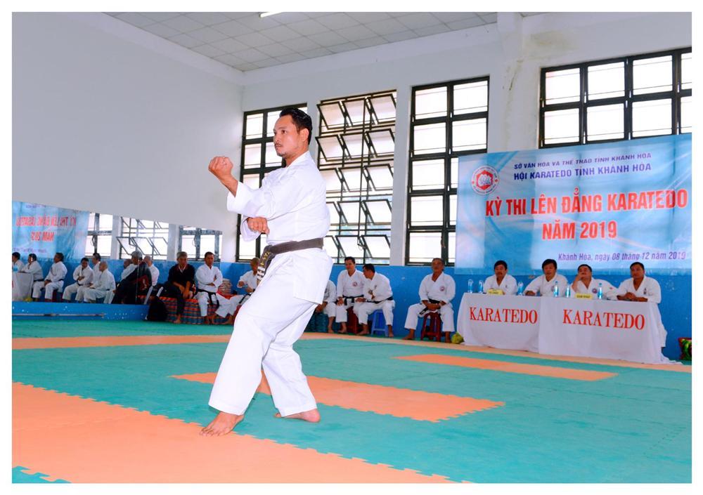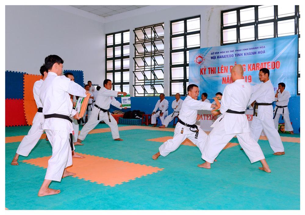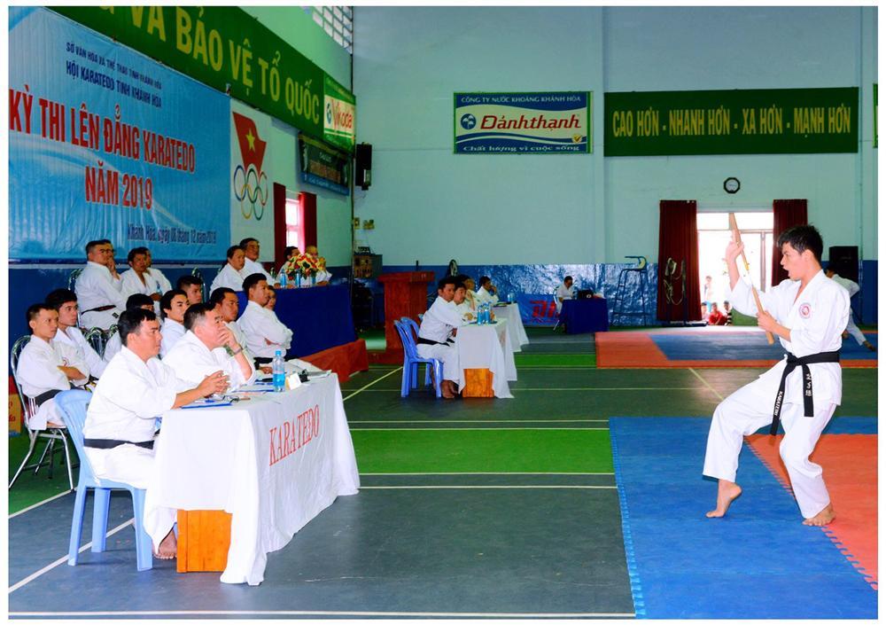 Các thí sinh hoàn thành đầy đủ các nội dung thi về võ thuật cũng như võ đạo theo chương trình thi lên Đẳng mà Hội đã ban hành được Hội đồng Giám Khảo nhận xét là khá tốt về chất lượng. Buổi chiều cùng ngày, tại Trung Tâm Huấn Luyện Kỹ Thuật Thể Thao Khánh Hòa, Hội đã tiếp tục tổ chức phần thi lên Huyền đai Đệ Tứ Đẳng cho 11 môn sinh, các thí sinh lần lượt thực hiện các nội dung: Kata, vũ khí, Tameshiwari bên cạnh hoàn chỉnh luận văn võ học (từng thí sinh được các võ sư trong Ban Chuyên Môn và Huấn Luyện của Hội tư vấn hướng dẫn hoàn thiện đề tài mà mình đã chọn). Thầy Chủ Tịch Hội phân công 3 Võ Sư Rokutdan Khánh Hòa là Võ sư Phan Gia Uẩn, Võ sư Phạm Ngọc Thương và Võ sư Nguyễn Văn Minh làm nhiệm vụ chấm thi các thí sinh này.