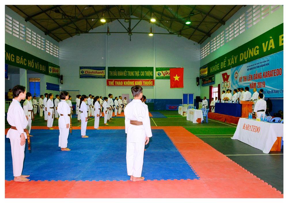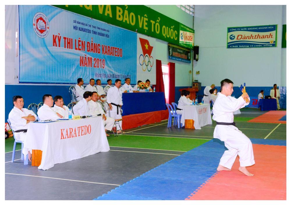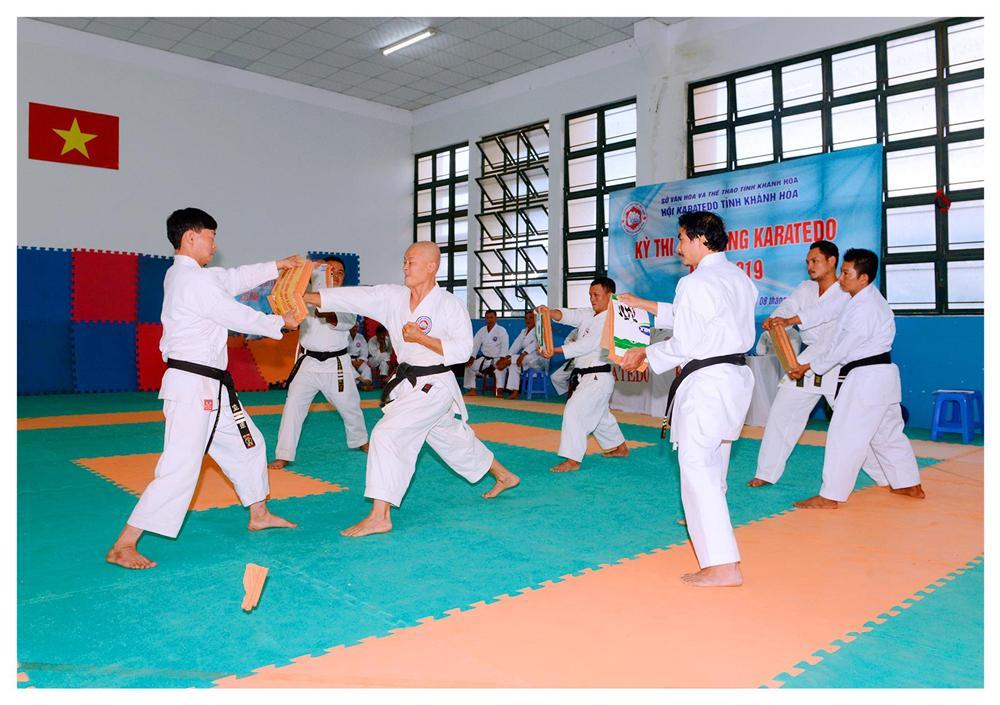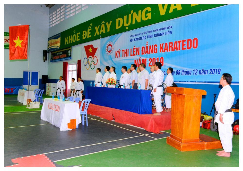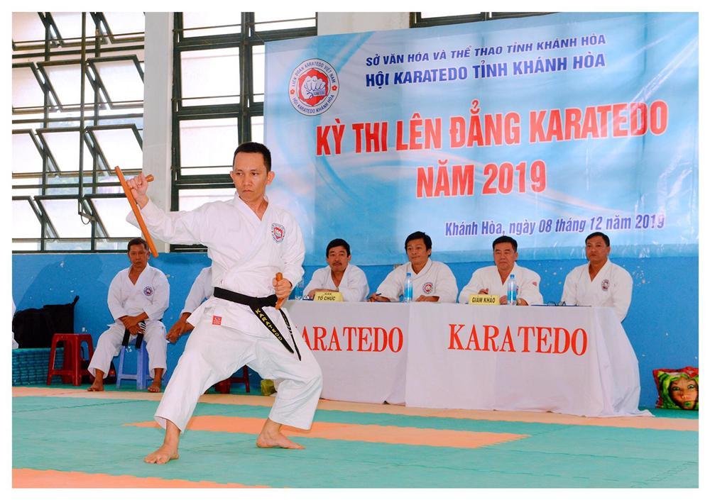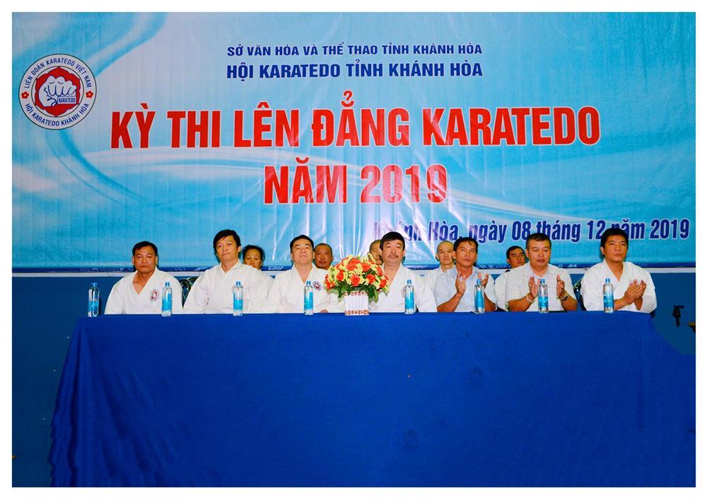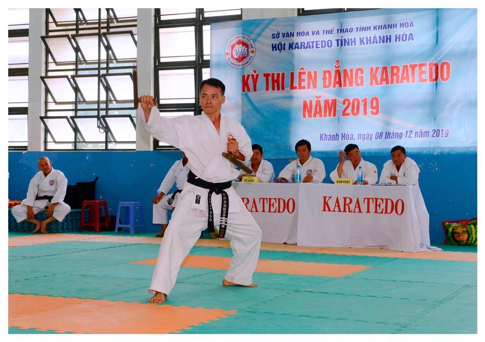 Các thí sinh hoàn thành đầy đủ các nội dung thi về võ thuật cũng như võ đạo theo chương trình thi lên Đẳng mà Hội đã ban hành được Hội đồng Giám Khảo nhận xét là khá tốt về chất lượng. Buổi chiều cùng ngày, tại Trung Tâm Huấn Luyện Kỹ Thuật Thể Thao Khánh Hòa, Hội đã tiếp tục tổ chức phần thi lên Huyền đai Đệ Tứ Đẳng cho 11 môn sinh, các thí sinh lần lượt thực hiện các nội dung: Kata, vũ khí, Tameshiwari bên cạnh hoàn chỉnh luận văn võ học (từng thí sinh được các võ sư trong Ban Chuyên Môn và Huấn Luyện của Hội tư vấn hướng dẫn hoàn thiện đề tài mà mình đã chọn). Thầy Chủ Tịch Hội phân công 3 Võ Sư Rokutdan Khánh Hòa là Võ sư Phan Gia Uẩn, Võ sư Phạm Ngọc Thương và Võ sư Nguyễn Văn Minh làm nhiệm vụ chấm thi các thí sinh này.