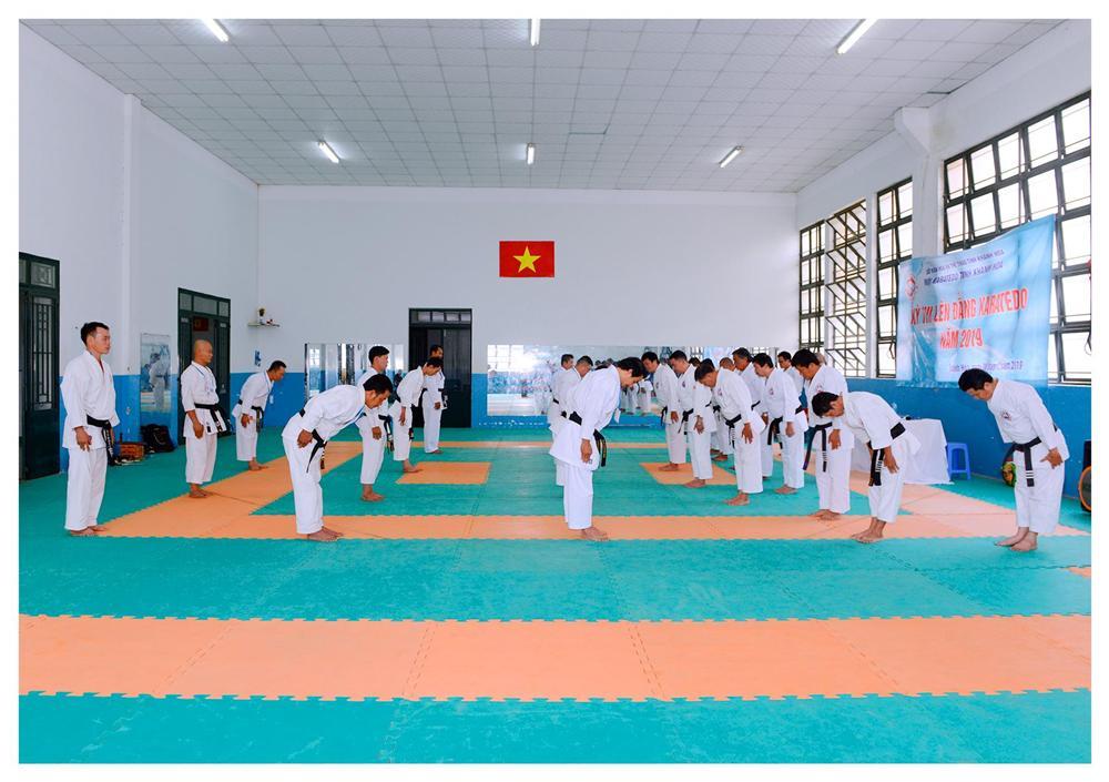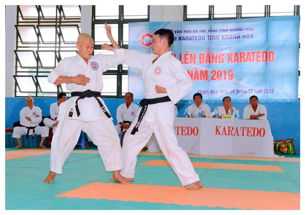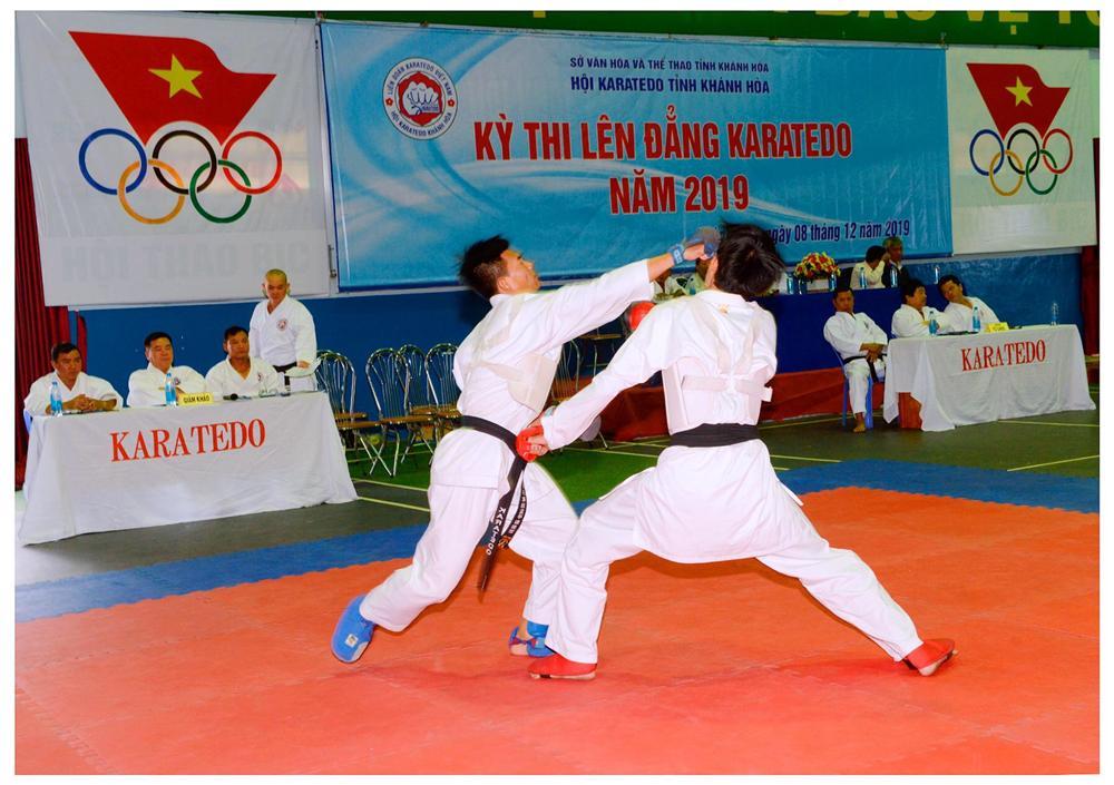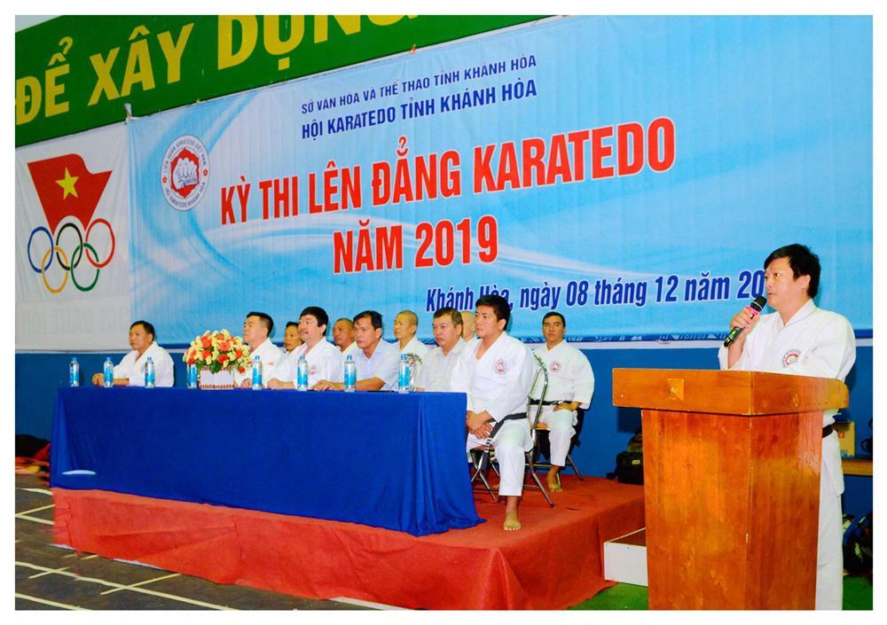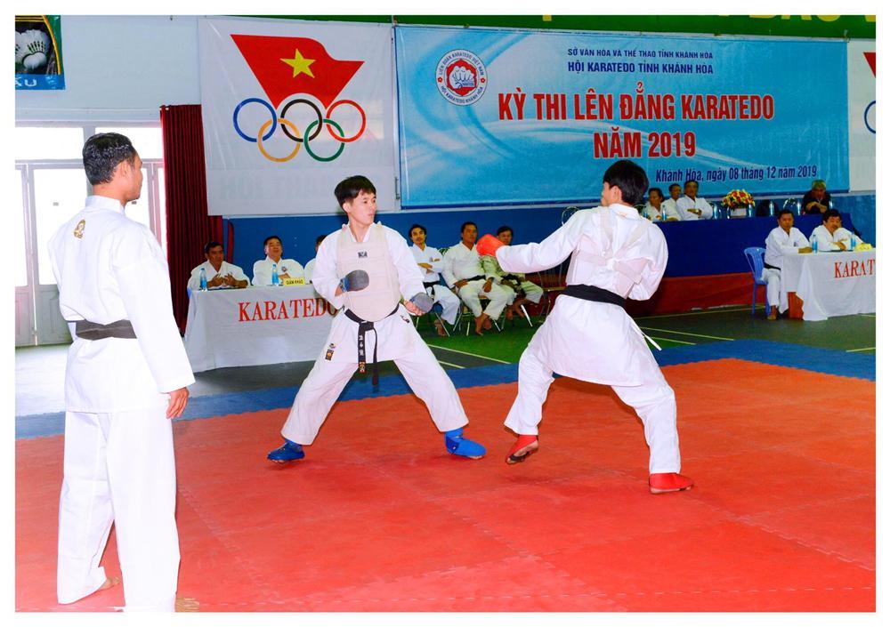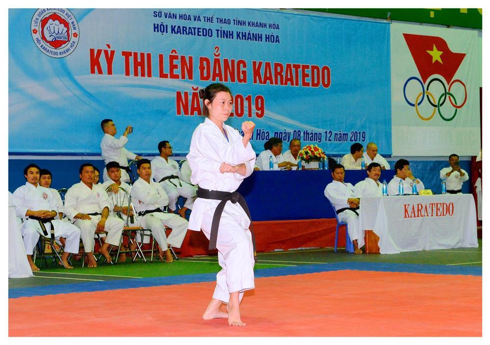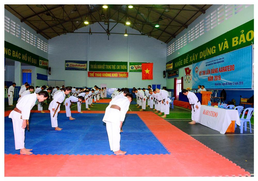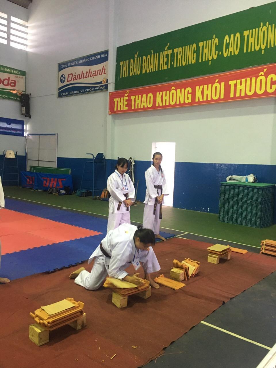 Các thí sinh hoàn thành đầy đủ các nội dung thi về võ thuật cũng như võ đạo theo chương trình thi lên Đẳng mà Hội đã ban hành được Hội đồng Giám Khảo nhận xét là khá tốt về chất lượng. Buổi chiều cùng ngày, tại Trung Tâm Huấn Luyện Kỹ Thuật Thể Thao Khánh Hòa, Hội đã tiếp tục tổ chức phần thi lên Huyền đai Đệ Tứ Đẳng cho 11 môn sinh, các thí sinh lần lượt thực hiện các nội dung: Kata, vũ khí, Tameshiwari bên cạnh hoàn chỉnh luận văn võ học (từng thí sinh được các võ sư trong Ban Chuyên Môn và Huấn Luyện của Hội tư vấn hướng dẫn hoàn thiện đề tài mà mình đã chọn). Thầy Chủ Tịch Hội phân công 3 Võ Sư Rokutdan Khánh Hòa là Võ sư Phan Gia Uẩn, Võ sư Phạm Ngọc Thương và Võ sư Nguyễn Văn Minh làm nhiệm vụ chấm thi các thí sinh này.