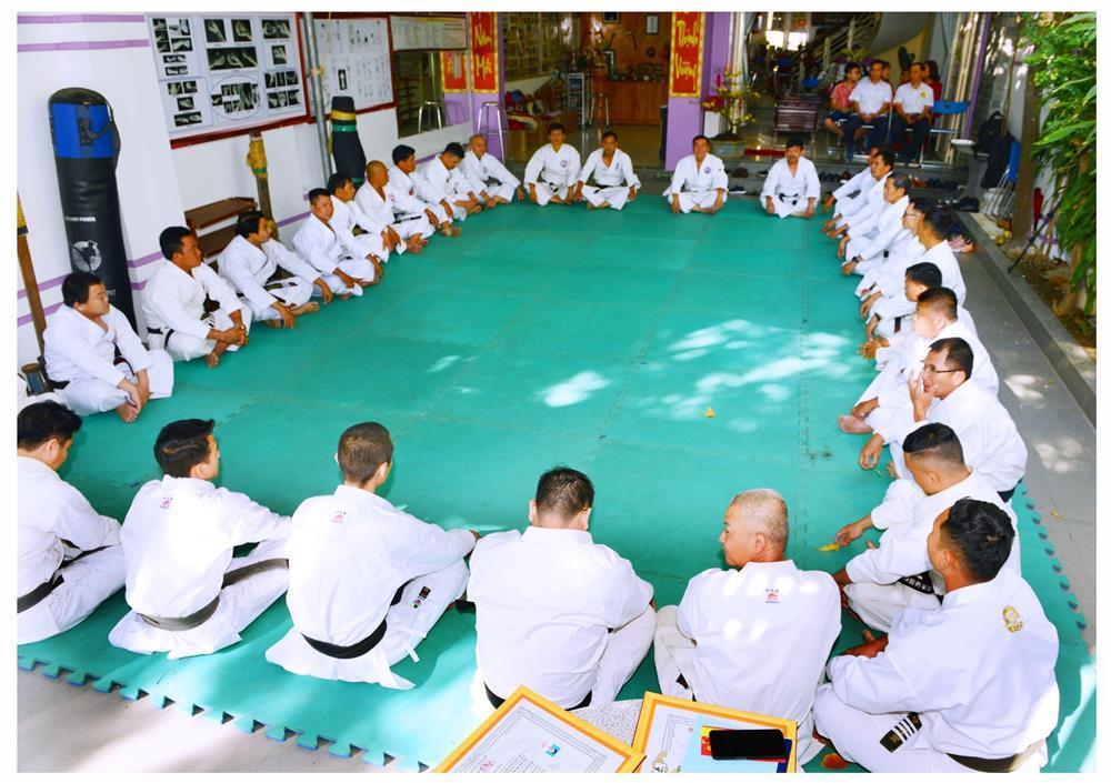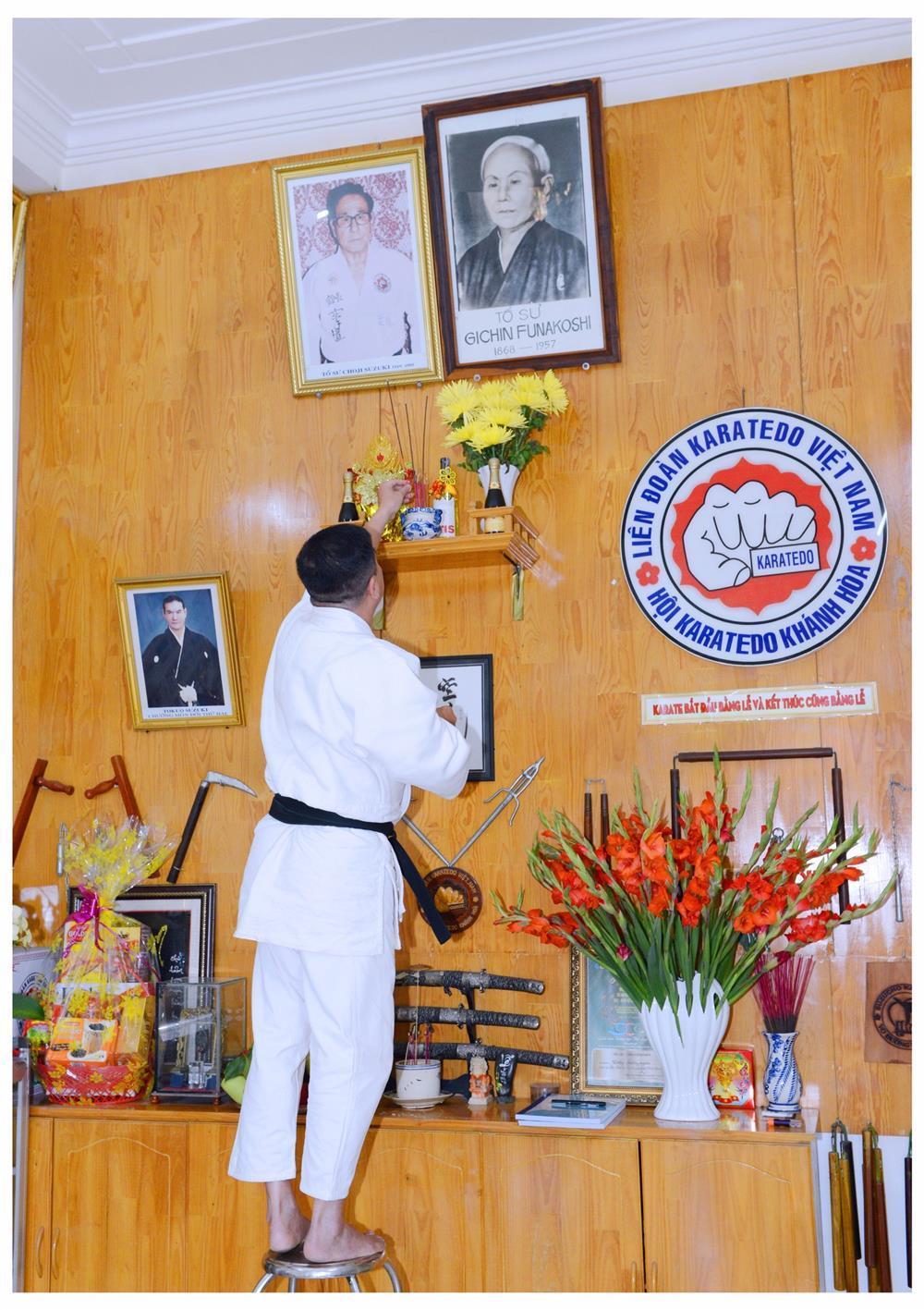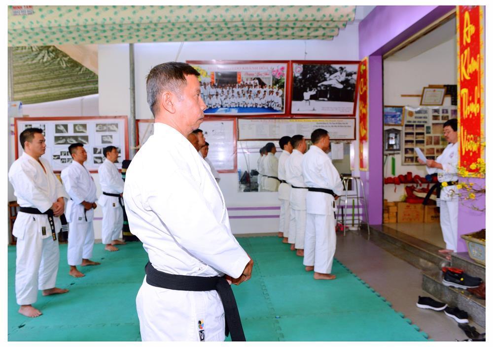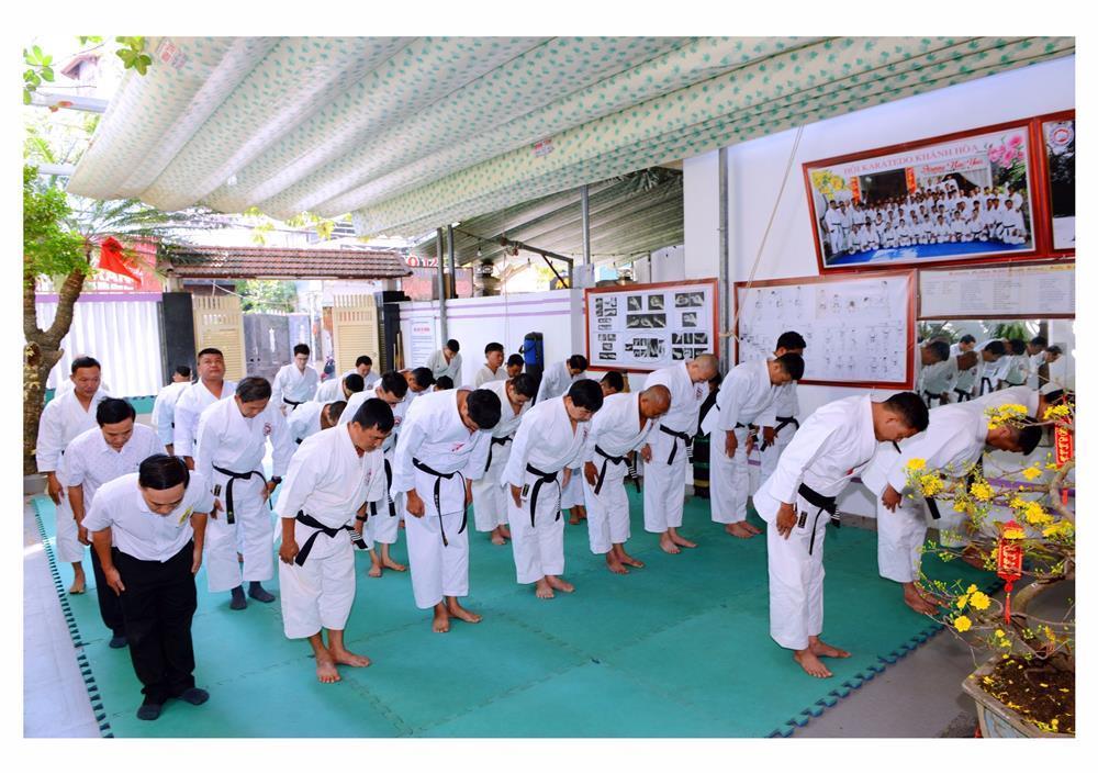 Sau khi Võ sư Phan Gia Uẩn – Chủ tịch Hội Karatedo tỉnh Khánh Hòa dâng nén hương lên bàn thờ Tổ, đại chúng hành lễ Tổ Sư, các bậc tiền bối Karatedo; trong không khí trang nghiêm đó các môn đồ, môn sinh lắng nghe thư chúc Tết của Thầy Nguyễn Tấn Kiệt – Sư trưởng Karatedo Khánh Hòa và Ban chấp hành Hệ phái Suzucho Karatedo Việt Nam.