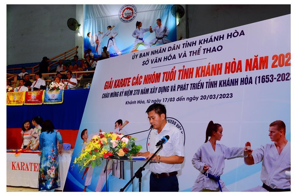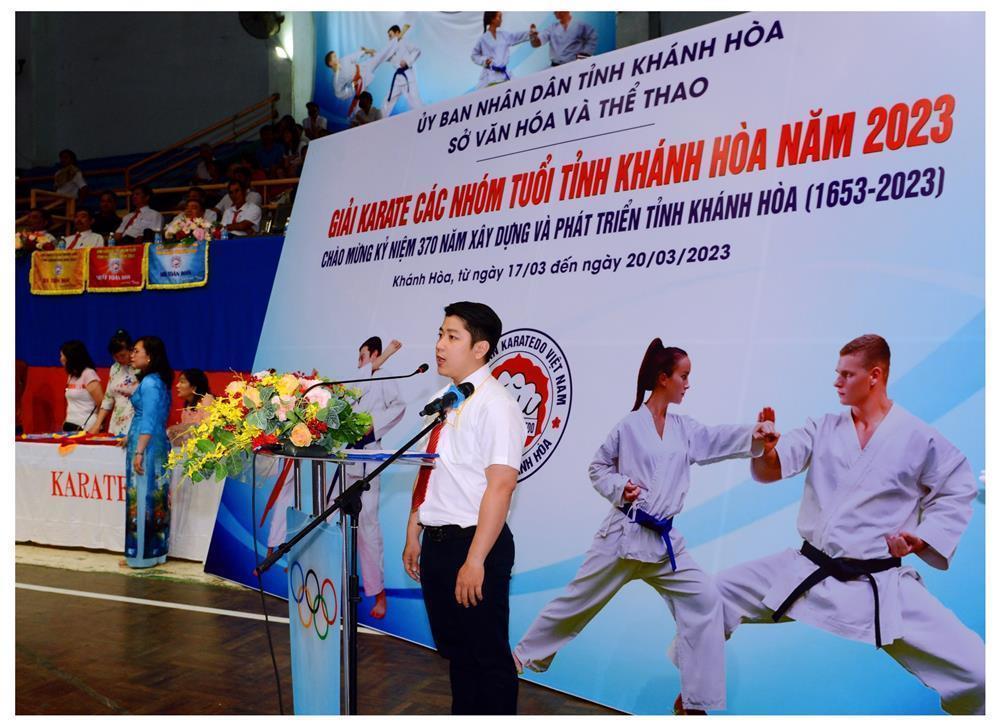 Ông Lê Hùng Tâm, Giám đốc Trung tâm Dịch vụ thi đấu thể thao Khánh Hoà, Phó Trưởng ban tổ chức Giải, đọc diễn văn khai mạc
