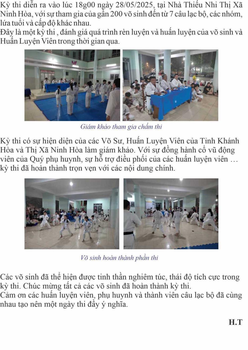 Ban Chấp Hành Hội tổ chức thi lên cấp cho Các Câu lạc bộ Karatedo Huyện Cam Lâm, Diên Khánh, Khánh Vĩnh, Cung Văn hóa Thiếu Nhi Tỉnh Khánh Hòa.