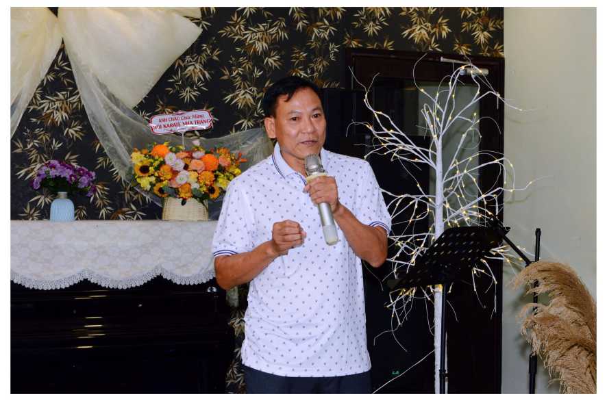 Ông Nguyễn Văn Minh - Phó chủ tịch Hội Karatedo Tỉnh Khánh Hòa - Chi Hội Trưởng Karatedo nha Trang - phát biểu tại buổi lễ.