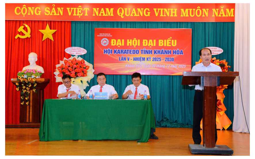 Chiều 20-12, tại phường Nha Trang, Hội Karatedo tỉnh Khánh Hòa tổ chức Đại hội đại biểu lần thứ V, nhiệm kỳ 2025 - 2030. Tham dự, có Ông Nguyễn Tuấn Thanh - Phó Giám đốc Sở VHTT và DL tỉnh Khánh Hòa; Ông Trương Thanh Long – Phó giám đốc Sở Nội Vụ tỉnh Khánh Hòa; Đại diện Lãnh đạo các Liên đoàn, các Hội Võ thuật; Ông Phan Gia Uẩn - Chủ tịch Hội Karatedo tỉnh Khánh Hòa; các Đại biểu, khách mời.